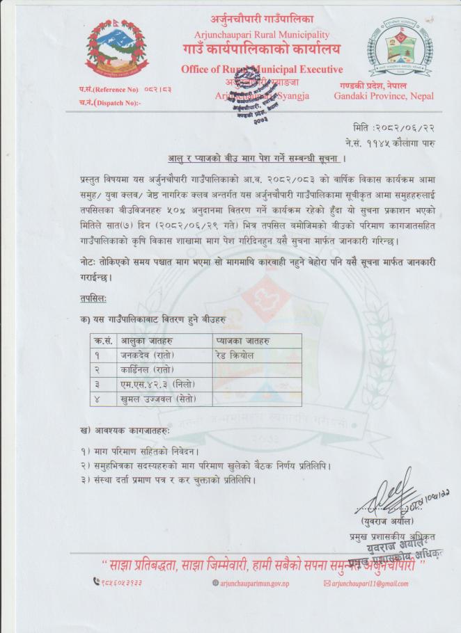 » आलु र प्याजको बीउ माग पेश गर्ने सम्बन्धी सूचना।