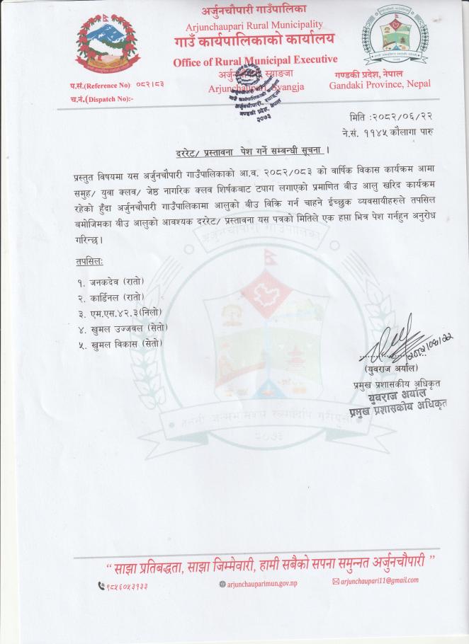 आलु र प्याजको बीउ माग पेश गर्ने सम्बन्धी सूचना।