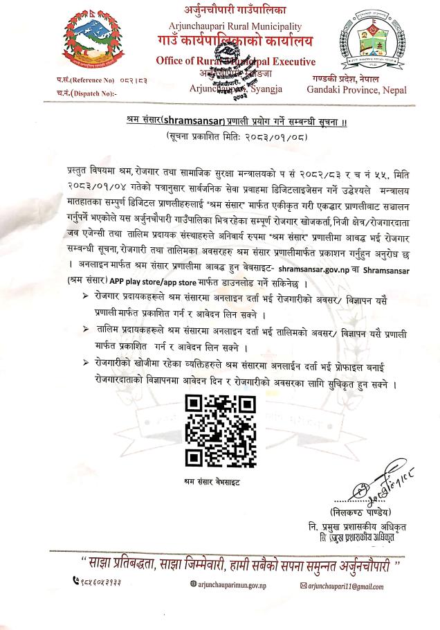 » श्रम संसार (shramsansar) प्रणाली प्रयोग गर्ने सम्बन्धी सूचना !!