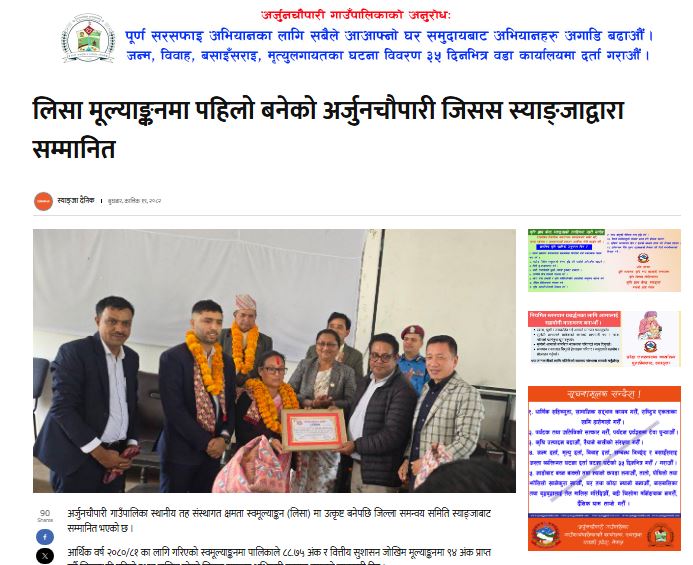 lisa मा उत्कृष्ट अर्जुनचौपारी सम्मानित