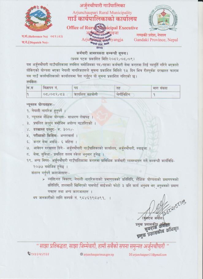 कर्मचारी आवश्यकता सम्बन्धी सूचना।