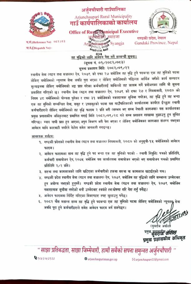तह बृद्धिको लागि आवेदन पेश गर्ने सम्बन्धी सूचना।
