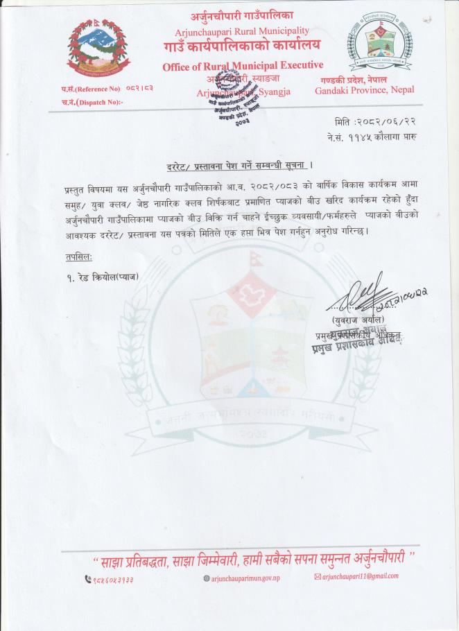 आलु र प्याजको बीउ माग पेश गर्ने सम्बन्धी सूचना।