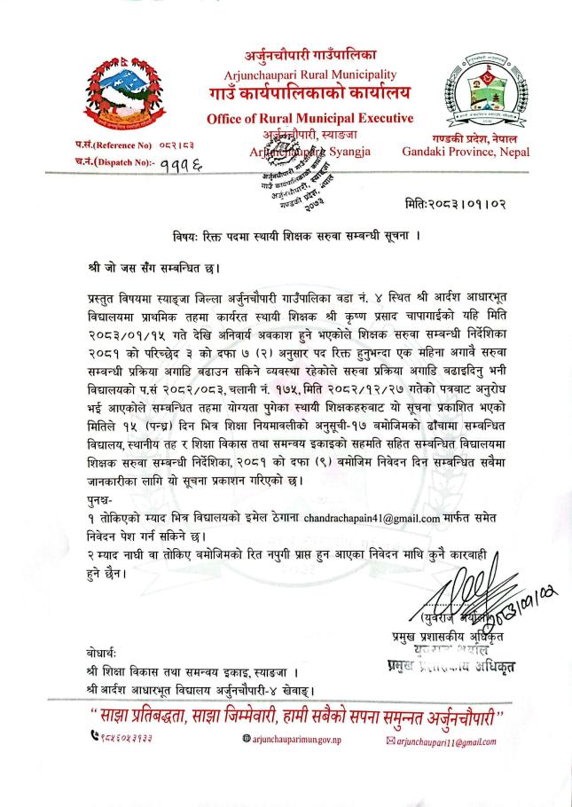 » रिक्त पदमा स्थायी शिक्षक सरुवा सम्बन्धी सूचना