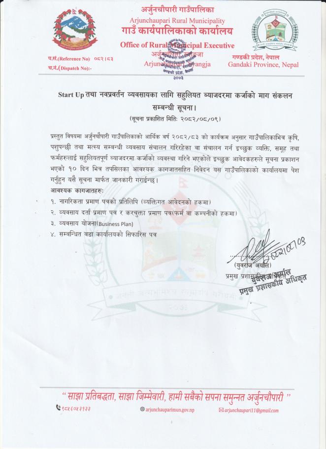 Start up तथा नवप्रवर्तन व्यवसायका लागि सहुलियत ब्याजदरमा कर्जाको माग संकलन सम्बन्धी सूचना ।
