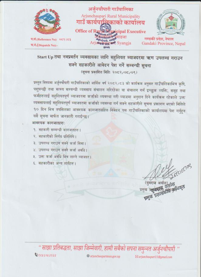 Start up तथा नवप्रवर्तन व्यवसायका लागि सहुलियत ब्याजदरमा कर्जाको माग संकलन सम्बन्धी सूचना ।