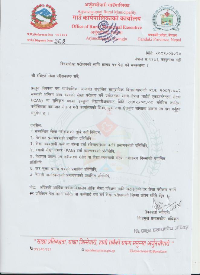 लेखा परीक्षणको लागि आशय पत्र पेश गर्ने सम्बन्धमा।
