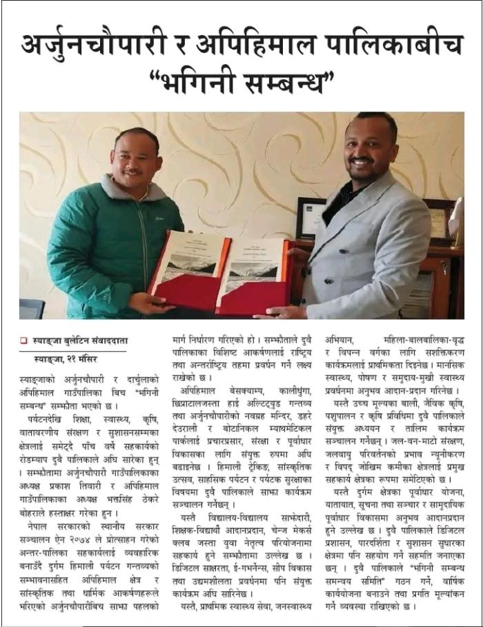 अपिहिमाल र अर्जुनचौपारी गाउँपालिका बीच भगिनी सम्बन्ध