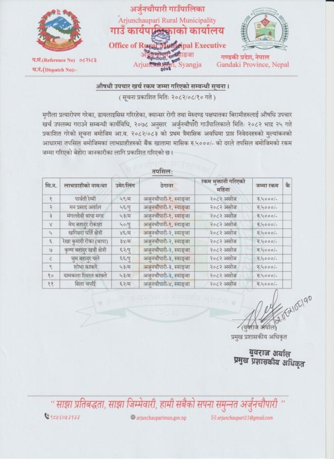 औषधी उपचार खर्च रकम जम्मा गरिएको सम्बन्धी सूचना ।