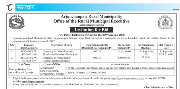 सार्वजनिक खरिद/बोलपत्र सूचना
